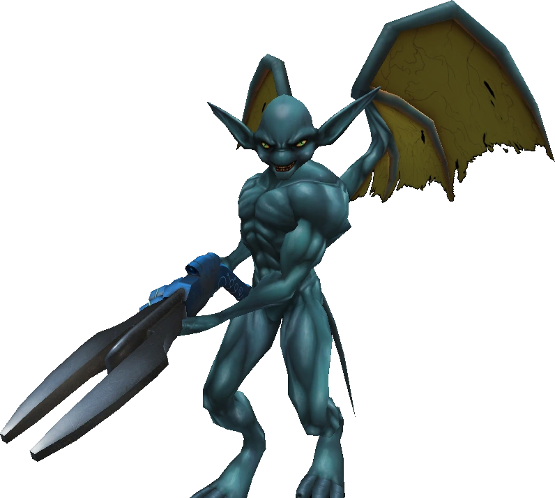 While statues of his diabolical visage adorn the towers of Notre Dame, villagers lived in blissful ignorance of his existence for hundreds of years. Known by many names, including Doccione, Ausguss, and the simple Gargoyle, he is an icon of fear, perversion, and deviance throughout the world. Now, taken from his seclusion into the rigorous trials of the Arena, he can no longer rely on fear alone. Fortunately, his quick reflexes and sadistic pleasures will do just fine. (See Gargoyle).